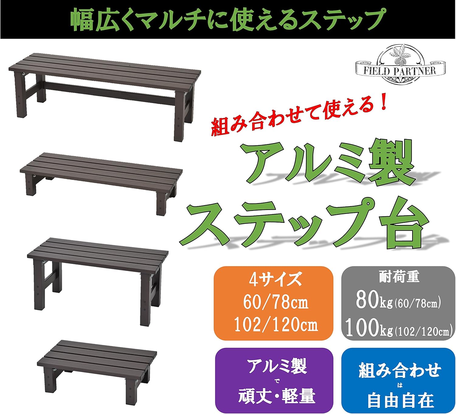 field partner 頑丈アルミ縁台 60cm