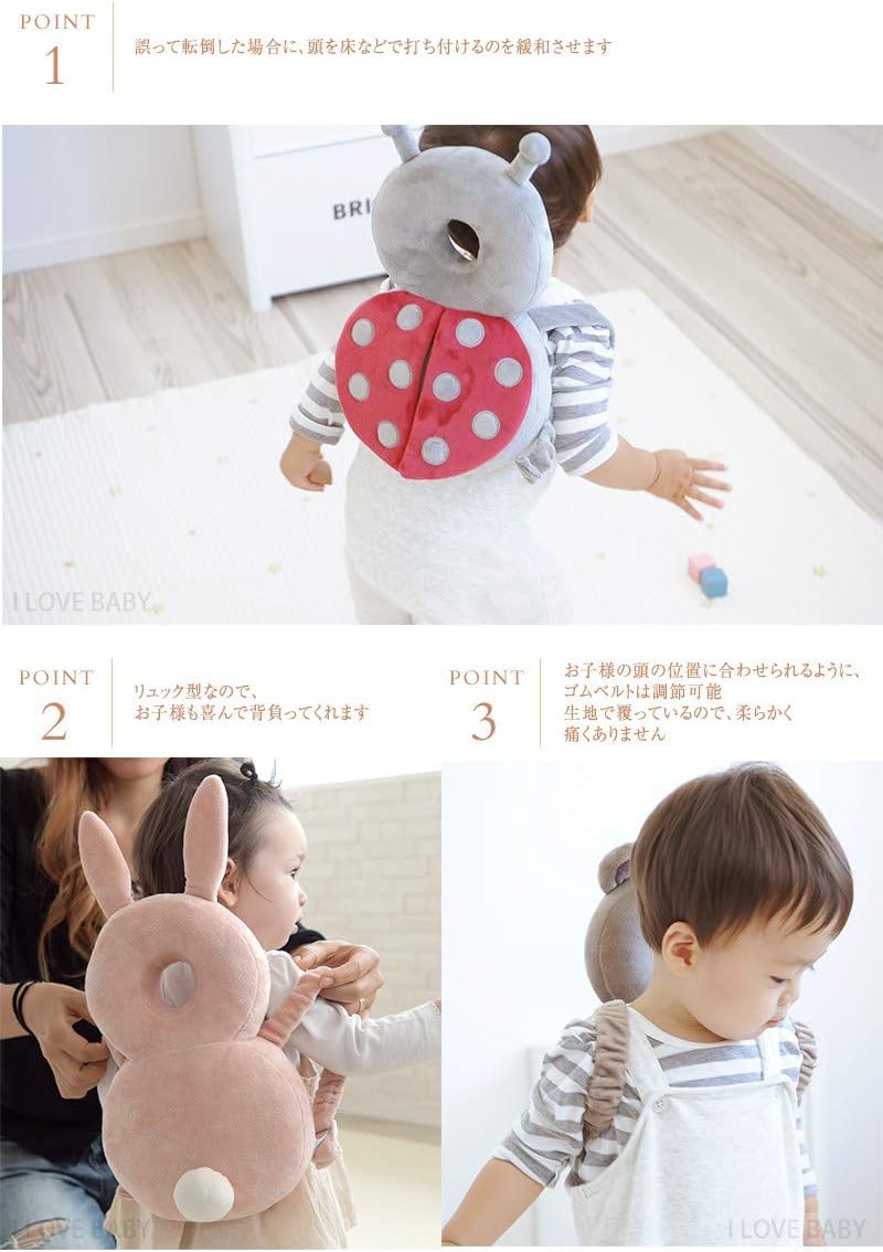 lehom 赤ちゃんのごっつん防止やわらかリュック かわいいクッション 適用年齢6ヶ月 24ヶ月 メッシュタイプ