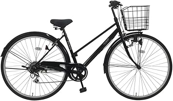 amazon シティサイクル ブラック 黒 完全組立 自転車 27インチ ギアなし 鍵付き ライト付き かご付き trois ママチャリ trois スポーツ アウトドア