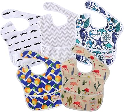 ohbabyka5点セット ビブ お食事エプロン スタイ よだれかけ スーパービブ 防水 袖なし 保育園 ベビー用エプロン 給食 ポケット付き 赤ちゃん用エプロン 離乳食エプロン szy0105060713