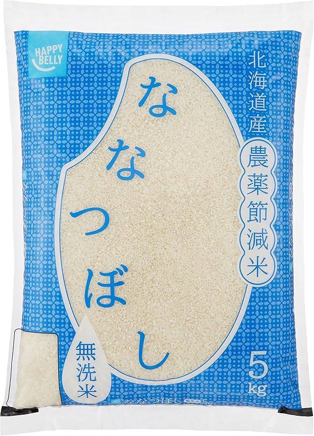 精米 amazonブランド happy belly 無洗米 北海道産 農薬節減米 ななつぼし 5kg 令和2年産