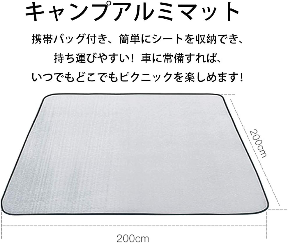 銀マット キャンプ用 200 200cm 折りたたみ アルミシート レジャーシート アルミ蒸着 キャンプ 保温 マット ピクニック シート キャンピングマット 大判 防水 防災 車中泊 防湿 断熱 収納袋付
