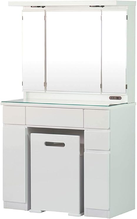 isseiki 三面鏡ドレッサー 3面鏡 80 ホワイト 椅子付き coleo dresser 3menkyo 80 box mf wh コレオ 化粧台 収納