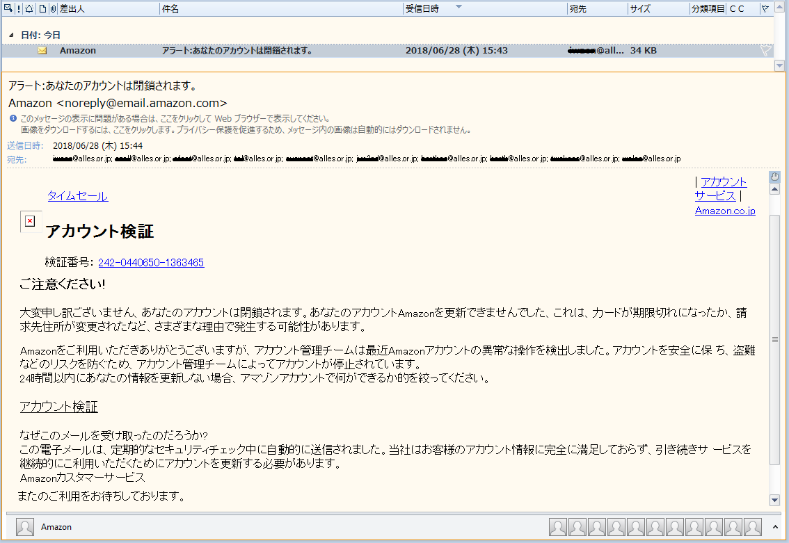 昨日 初めて アラート amazonアカウントの閉鎖 のメールが来た それで確認 犯罪被害につながるメール てらまち ねっと