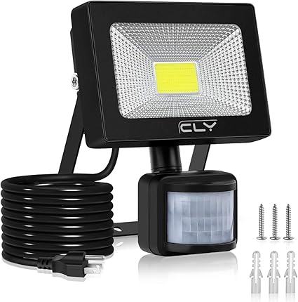 cly led 投光器 センサーライト 10w 昼白色 防犯ライト 屋外 人体センサー ブラケットライト コンセント 100v 人感点灯自動消灯 防水ip66 庭園灯 6500k ガーデンライト 広角 高輝度1100lm コード1 5m 庭 玄関 廊下 ナイター 駐車場 倉庫 通路 夜間センサー照明
