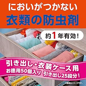 amazon amazon限定ブランド ライオンケミカル においがつかない衣類の防虫剤 引き出し 衣装ケース用 50個入 引き出し25段分 exclusive collection エクスクルーシブコレクション 防虫剤
