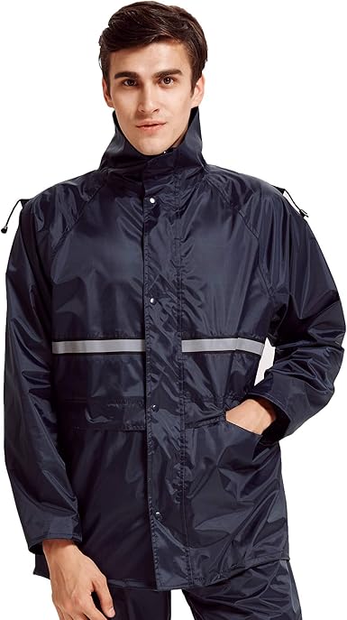 amazon kmesoyi 自転車用レインコート ロングレインウェア 雨合羽 男女兼用 ポンチョ 撥水 防水 通勤 通学 ネイビー レインコート ポンチョ 車 バイク