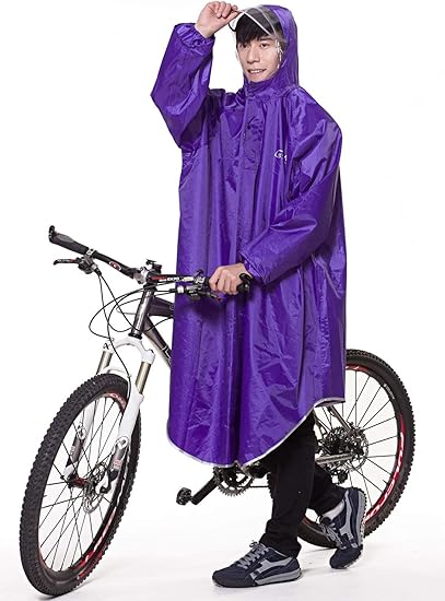 amazon sinkeu レインコート 自転車 バイク用 ロングポンチョ レディースメンズ用 レインポンチョ 雨具 厚手生地 防水 通勤通学 男女兼用 パープル レインコート ポンチョ 通販