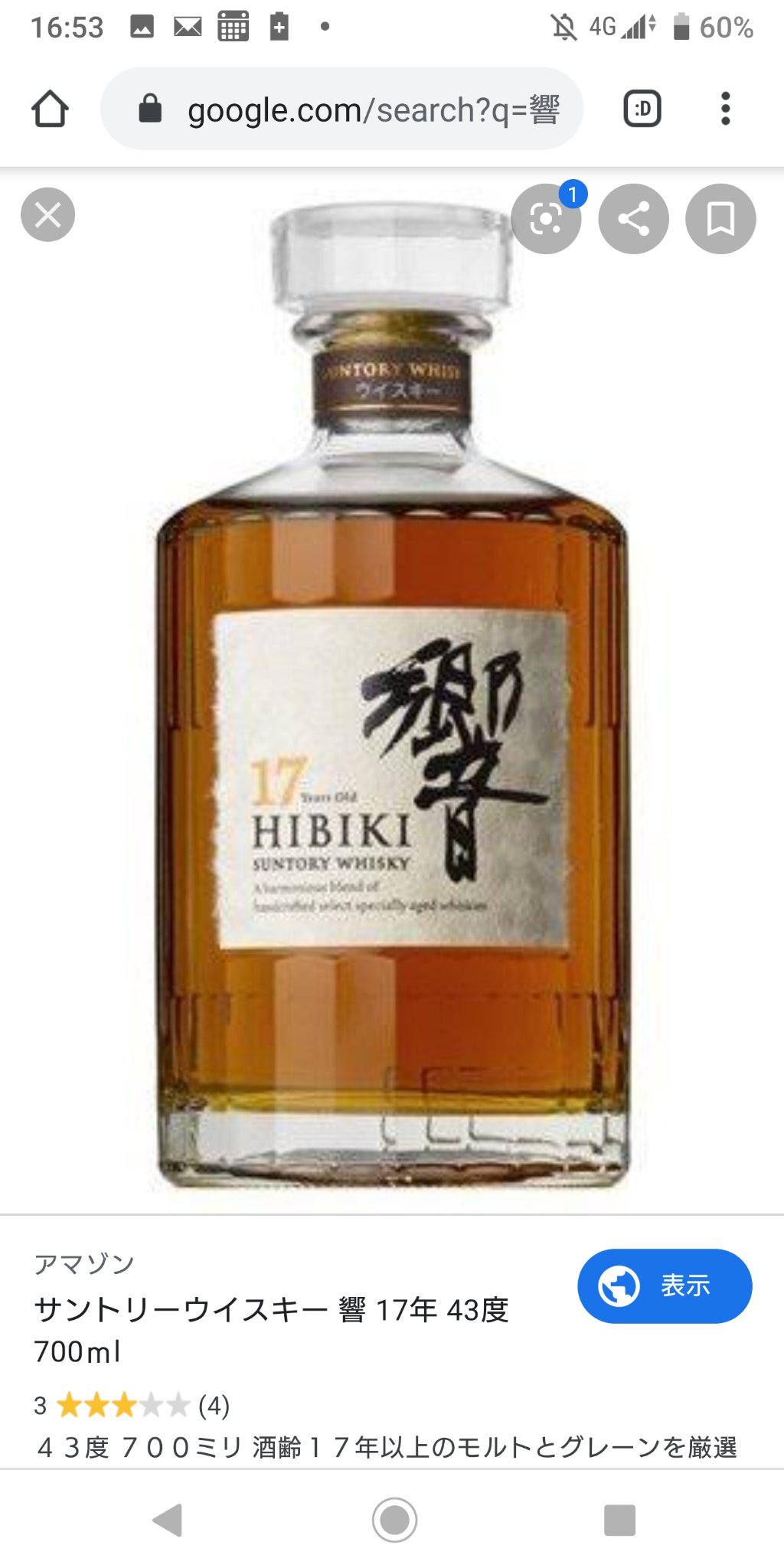 amazon co jp サントリー ブレンデッド ウイスキー 響17年 日本 700ml 食品 飲料 お酒