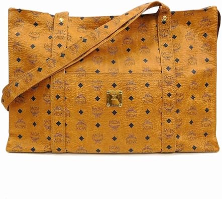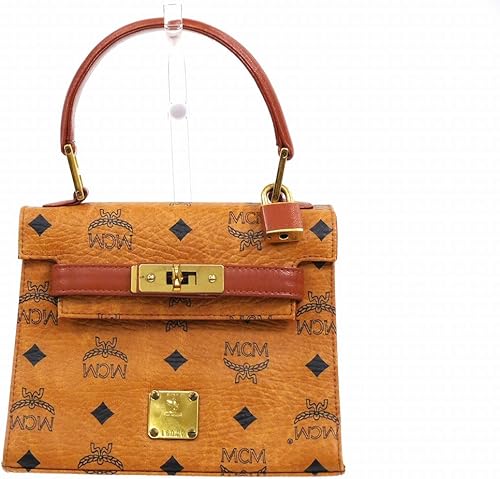 amazon エムシーエム mcm ロゴグラム ミニボストンバッグ ハンドバッグ pvc レザー コニャック 茶 ライトブラウン キャメル ゴールド金具 中古 ハンドバッグ