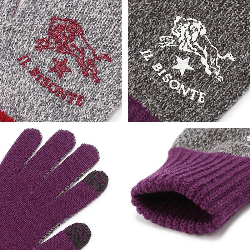 amazon サイズ 9 onesize 92 grey 54162309582 il bisonte イルビゾンテ leather patch knit globe レザーパッチ付ニットグローブ 手袋 スマートフォン対応 手袋 通販