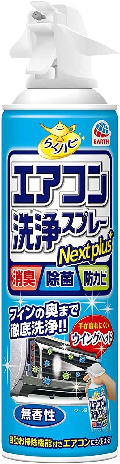 らくハピ エアコン洗浄スプレー nextplus 消臭 除菌 防カビも 無香性 420mlx2本 4個