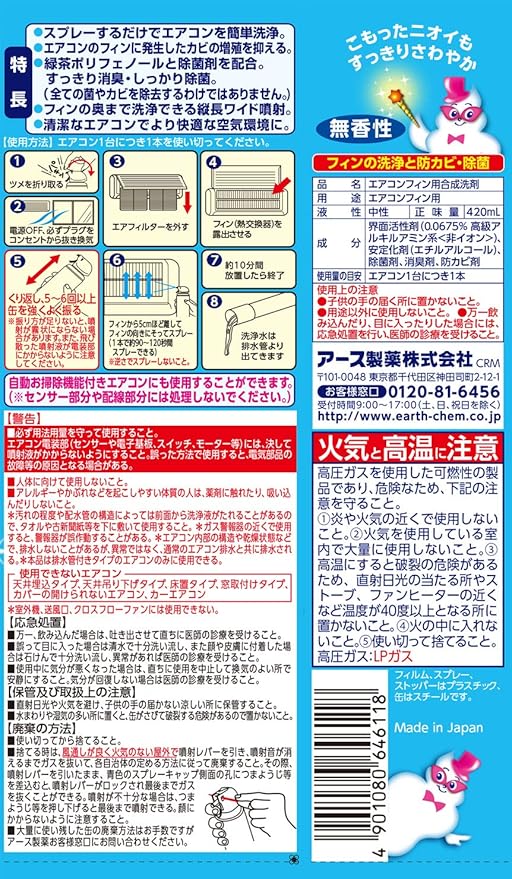 amazon アース製薬 エアコン洗浄スプレー 無香性 420ml らくハピ カビ取り剤