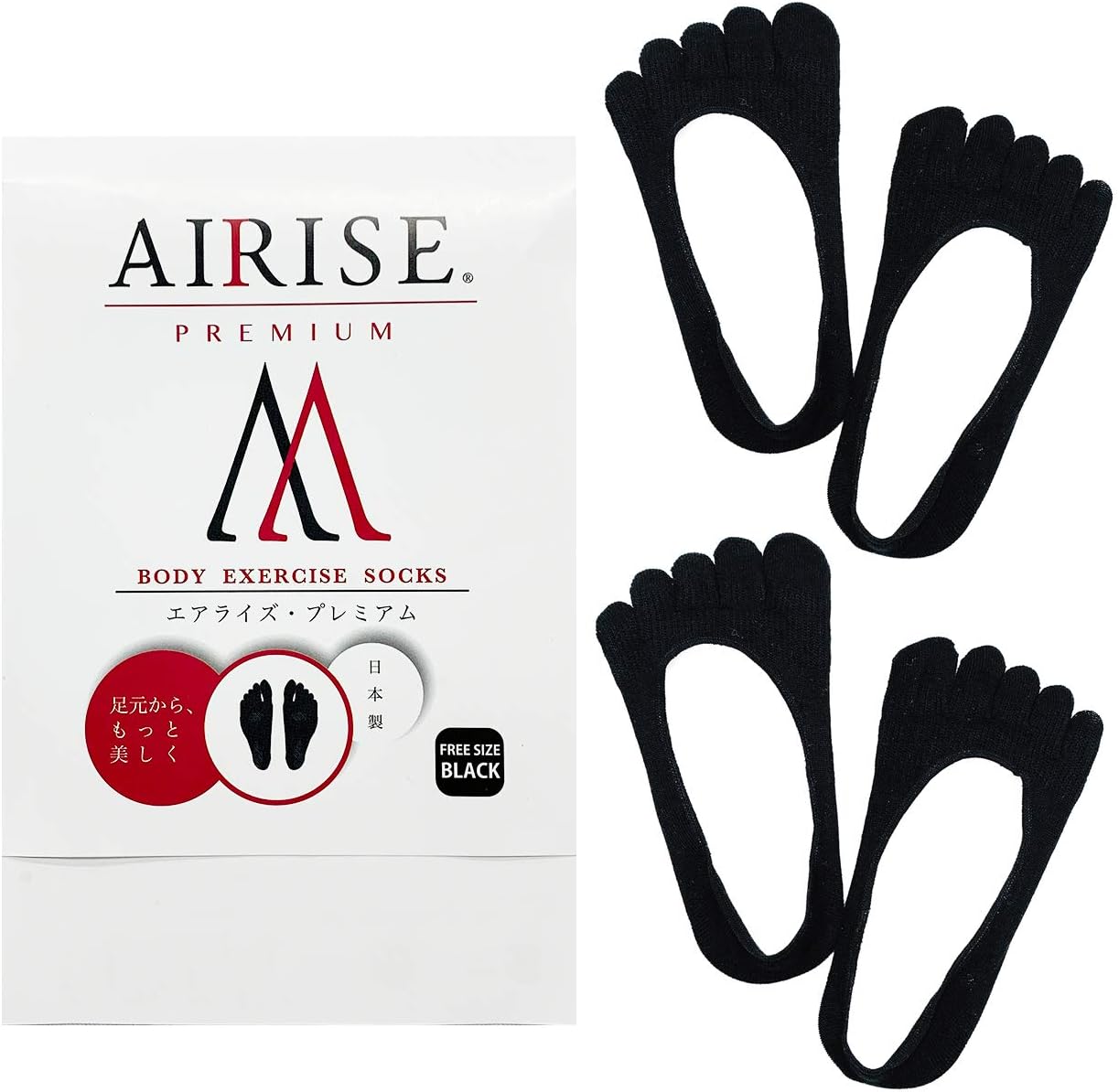 amazon 限定品 airise premium エアライズ プレミアム body exercise socks ボディー エクササイズ ソックス ブラック 2足セット airise 着圧ソックス