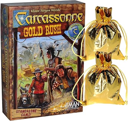amazon com carcassonne gold rush game stand alone game bonus 2 gold drawstring storage pouches toys games