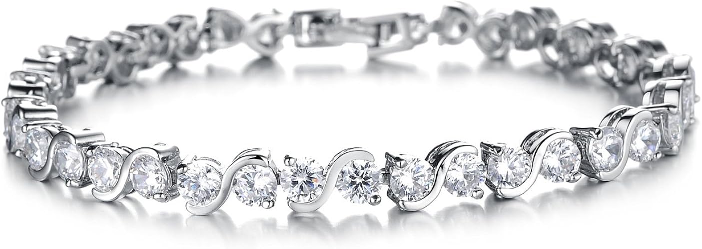 スタージュエリー魅力的なラウンドホワイトキュービックジルコニアczテニスブレスレット7 2インチ