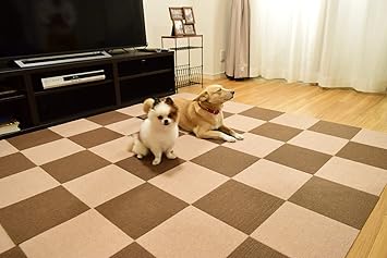 amazon タイルカーペット ジョイントマット 床保護マット 床暖房対応 防音 吸着 滑り止め 自由に組み合わせ タイルマット 25 25cm 20枚組 ブラウン10枚 ベージュ10枚 ジョイントマット オンライン通販