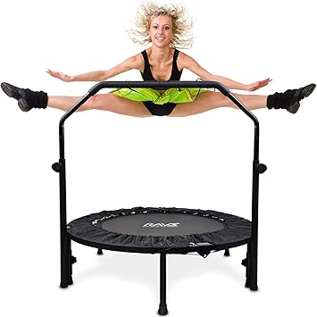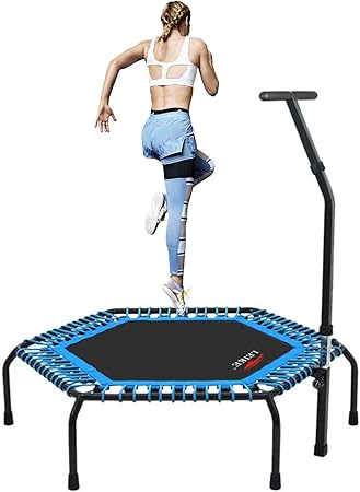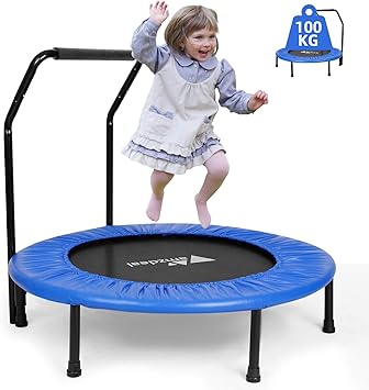 amazon トランポリン 補助手すり付き 大型122cm 耐荷重150kg 折りたたみ式 収納便利 4段階調整可能 安全 静音設計 家庭用 子供 用 大人用 兼用 子供のプレゼント日本語取扱説明書付き 122cm 手すり blue desertfox 室内用トランポリン