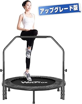 amazon wolfyok トランポリン 1年間保証 補助手すり付き 折りたたみ式 収納便利 ダイエットとエクササイズ用 トレーニング 安全や静音の設計 大型 耐荷重110kg 5段階調整可能 家庭用 子供 大人 子供のプレゼント 日本語取扱説明書付き 三色 wolfyok 室内用