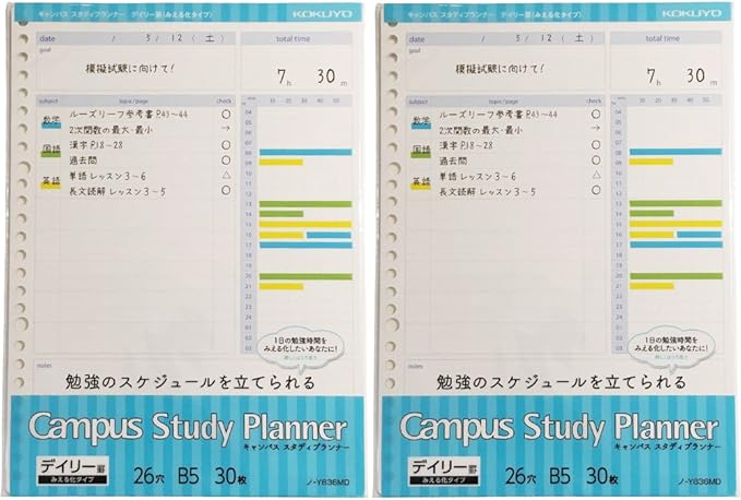 コクヨ キャンパス スタディプランナー ルーズリーフ デイリー罫みえる化 2冊セット ノ y836mdx2