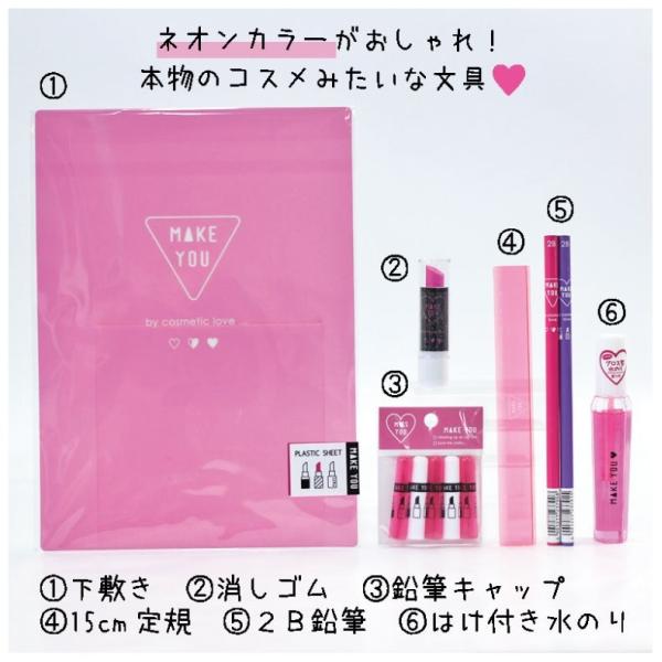 メイクユー 文房具 make you メイクユー文具3点セット 文具セット 女の子 消しゴム キャップ 下敷き メイクユーグッズ 文房具 かわいい 文具 中学生 小学生 女の子 女子 おしゃれ 人気 プチギフト パロディキャップ 誕生日 祝い 子供 子供会 景品 賞品 ギフトセット