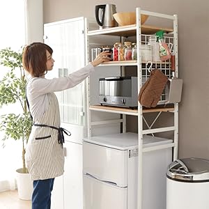 アイリスオーヤマ レンジ上ラック 冷蔵庫上ラック 温めた料理を置けるトレー付き キッチン収納 ホワイト ナチュラル 幅47 4 奥行43 4 高さ46 9cm