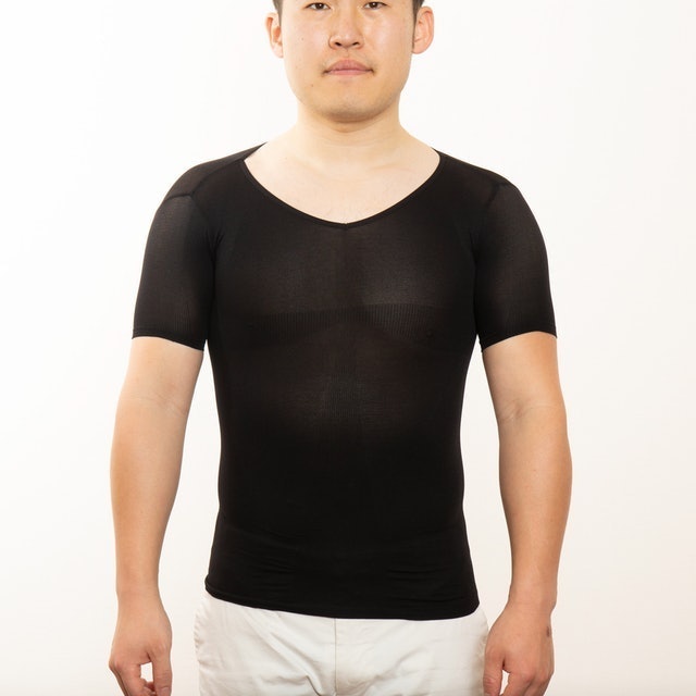 amazon 加圧シャツ メンズ インナー 姿勢 vネック お腹 機能性 筋トレ スパンデックス tomozone 黒 m tomozone 補正下着トップス