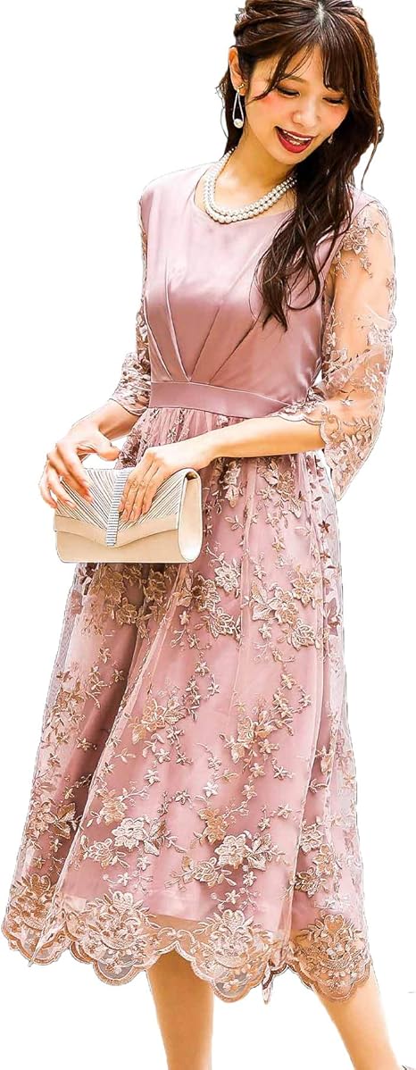 amazon パーティードレス ミモレ丈 総レース 袖あり 結婚式 ワンピース パーティードレス 大きいサイズ 入園式 二次会 謝恩会 同窓会 服装 発表会 大人 フォーマル 20代 30代 ピンク 40代 50代 ミモレ丈 上品 結婚式 m 二次会 ワンピース パーティードレス 通販