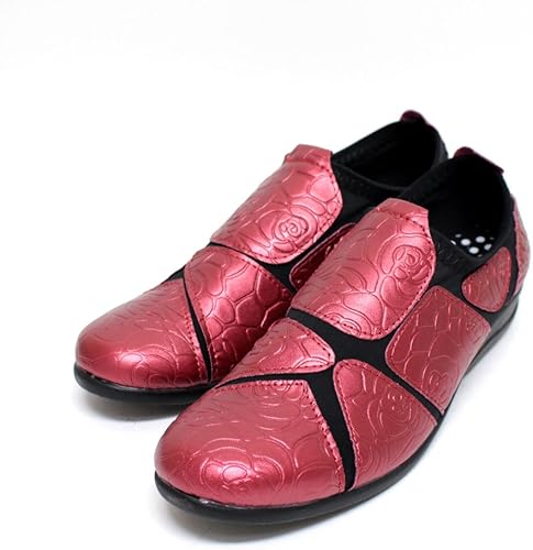 amazon ポポラーレ レディース ウォーキングシューズ 歩きやすい フラットシューズ 外反母趾 靴 2wayストレッチシューズ エナメルレッド m ウォーキング