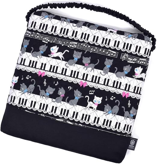ざぶとん キルティング 学童クッション ピアノの上で踊る黒猫ワルツ ブラック n3861300