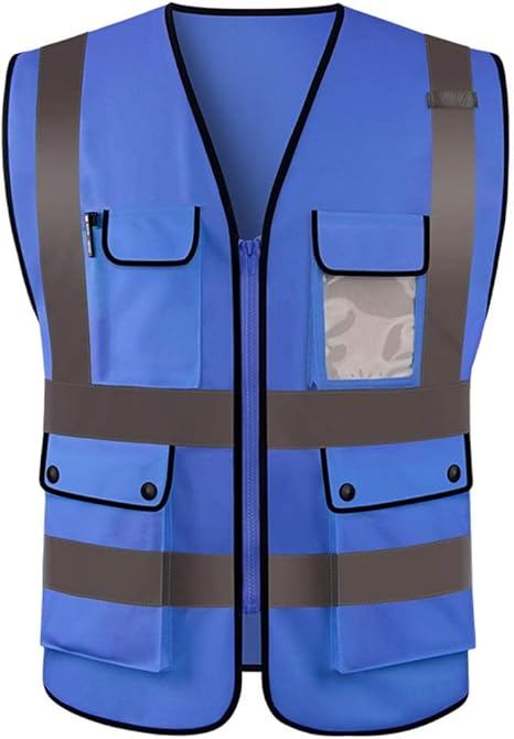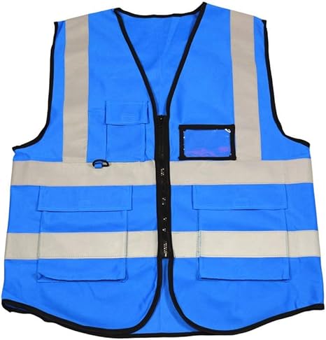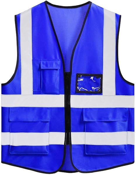 amazon co jp 男性用安全ベスト ポリエステル100 高視認性チョッキマルチポケット作業服反射安全ベストチョッキブルー ホーム キッチン