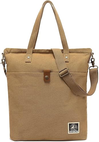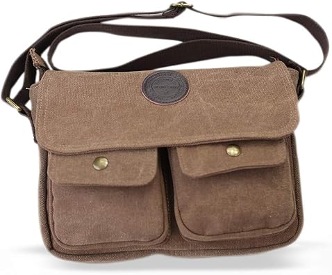 帆布生地ショルダーバッグ 大容量収納 ipadサイズ対応 メンズ ユニセックス カジュアル ビジネス用 ブラウン