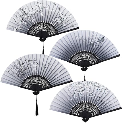 gwhole シルク扇子 4本セット 21cm 桃の花 蘭 梅の花 エレガント レディース用 紳士用