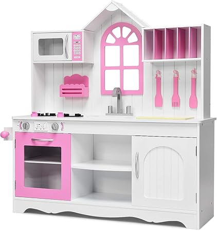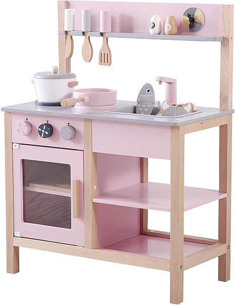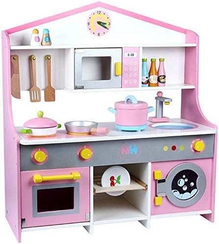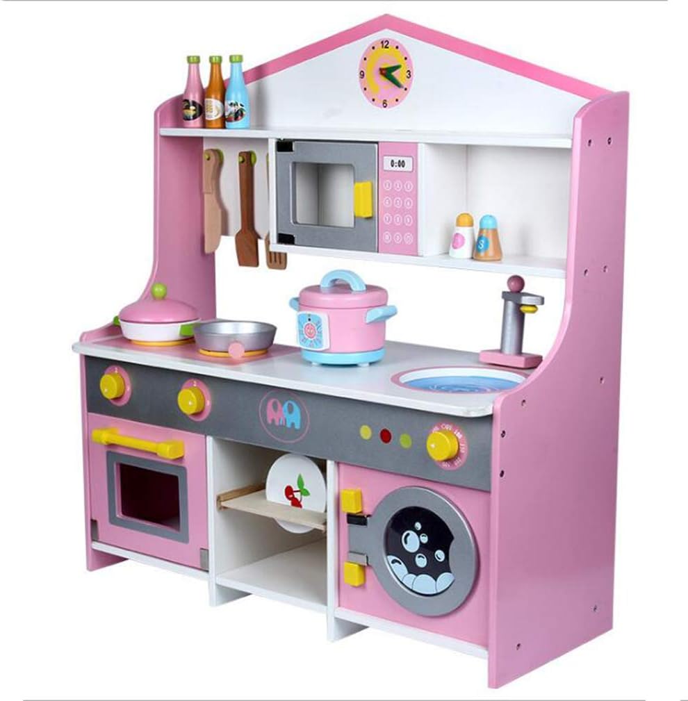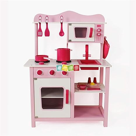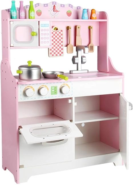 amazon co jp キッチンおもちゃ キッチン木製ごっこ遊びのおもちゃピンクキッチンキッズの役割を果たし含ま 調理器具 食器 色 pink size 60x30x84 5cm ホーム キッチン