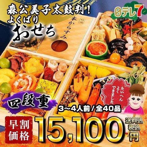 森公美子太鼓判 よくばりおせち 四段重 送料込み 日本テレビ 森クミ もりくみ おせち クール冷凍便 2019年12月30日お届け