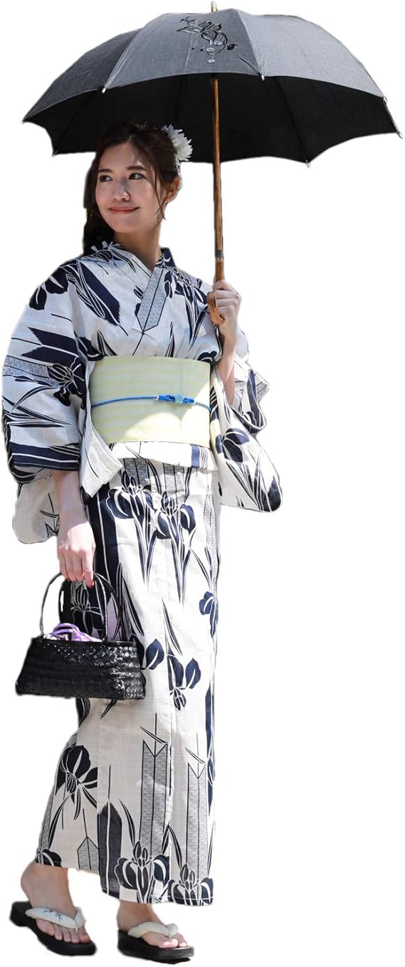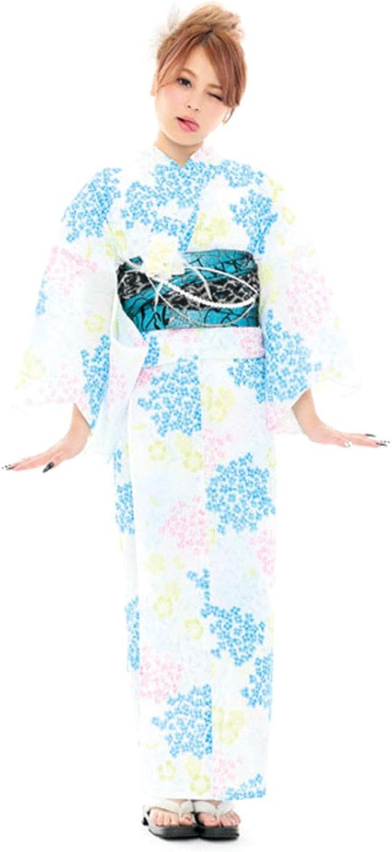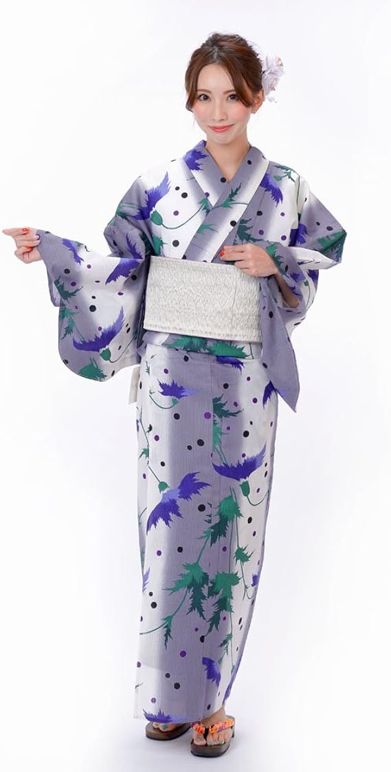 amazon レギュラーサイズ 浴衣 レディース セット 生成り地に麻の葉と鞠 高級綿麻浴衣3点セット 浴衣 帯 下駄 浴衣 通販