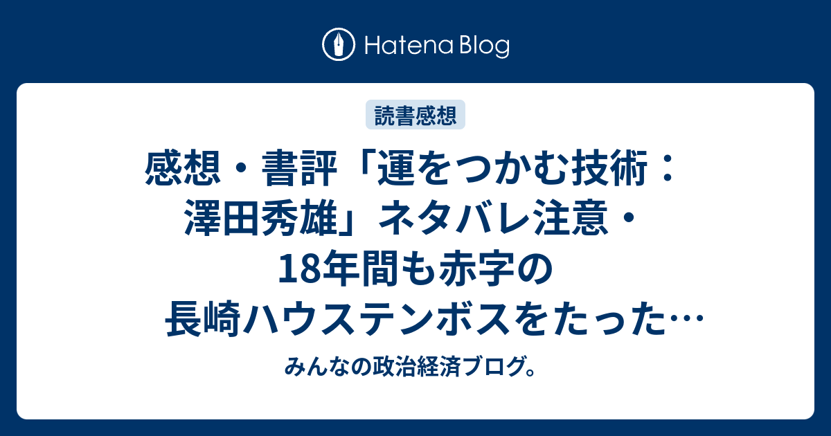 h i s会長 ハウステンボス社長澤田秀雄氏のお勧めの1冊とは 平野秀典オフィシャルブログ