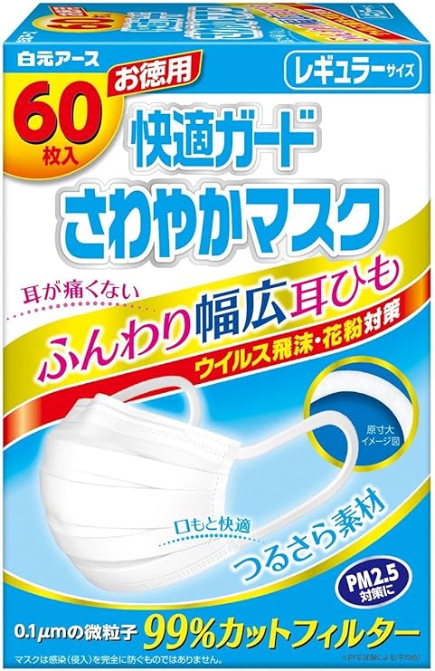 amazon 快適ガード さわやかマスク個別包装 レギュラーサイズ60枚入 30枚入 2箱 快適ガードプロ 家庭用マスク