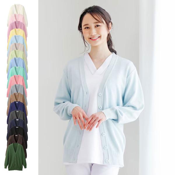 綿混やわらかカーディガン レギュラー丈 レディース オフィス 学生 ビジネス おおきいサイズ 医療 ナース 看護 介護 白衣 事務 全9色
