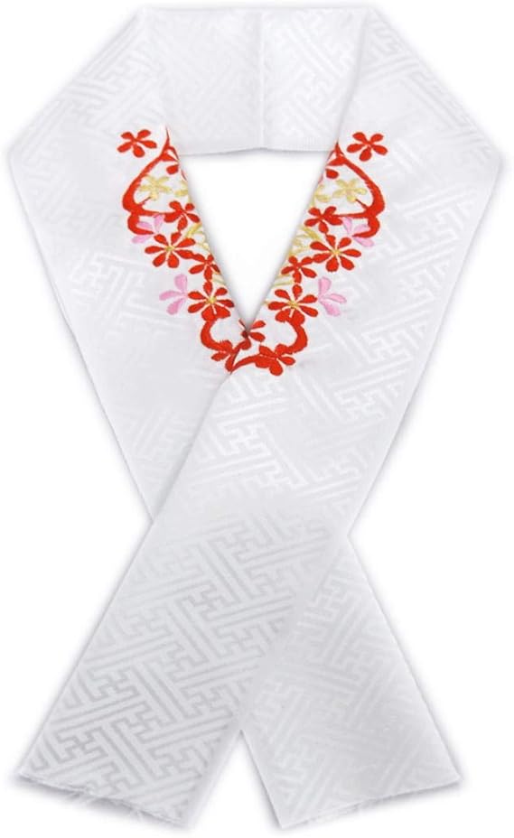amazon 半衿 半襟 刺繍 振袖 成人式 卒業式 袴 着物 白色地 赤白菊紫小桜 和装小物 通販