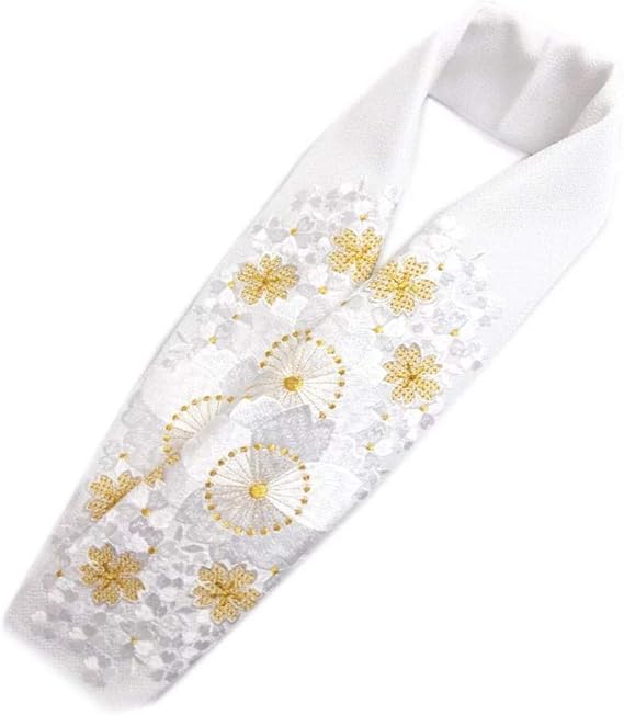 amazon 刺繍半襟 振袖用 白 成人式 卒業式 半衿 白 金 紗綾形梅桜竹文 訪問着用 eri1502018 白 金 紗綾梅桜 和装小物 通販