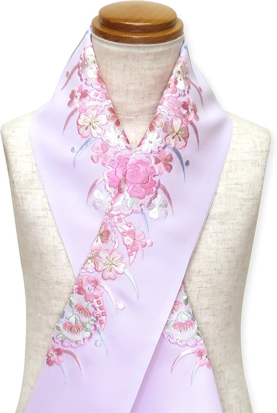 amazon silelly 半衿 振袖に 華やかな刺繍入りの半襟 合繊 藤色 花柄に雪輪 tep124 和装小物 通販