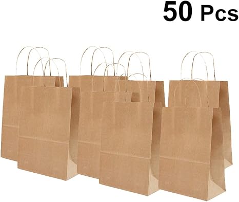 amazon 手提げ紙袋 100枚 茶無地 クラフト色 ショッピングバッグ キャリー 通販