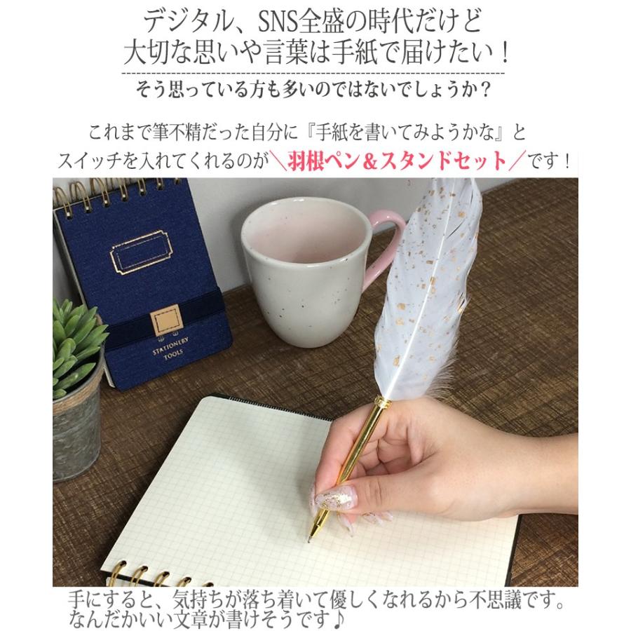 羽根ペン 羽ペン sirene ボールペン ペンスタンド付き おしゃれ 結婚式 受付 カウンター用 署名用 可愛い おもしろ文房具 インテリア雑貨 フェザー life is