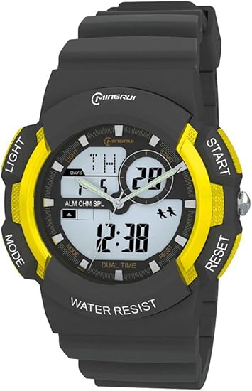 子供腕時計 アラーム キッズ腕時計 アナデジ 防水 日付 曜日 付き 夜光 ledバックライト ギフト用 イエロー