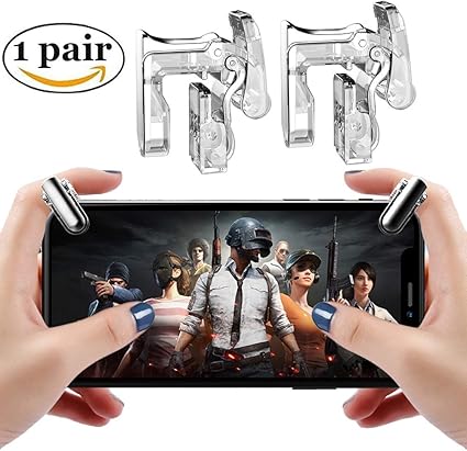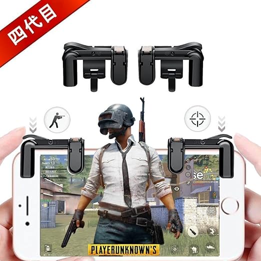 amazon co jp pubg mobile コントローラー aksblay 荒野行動 コントローラー スマホ用ゲームパッド 接触式感応 高速射撃 ボタン 金属押しボタン 1秒以内6発 装着も簡単 耐久性フルセット iphone android通用 2018最新版 クリア ゲーム