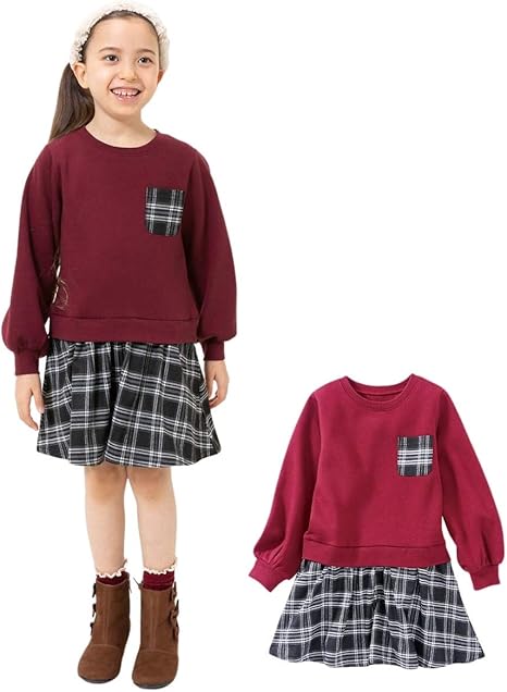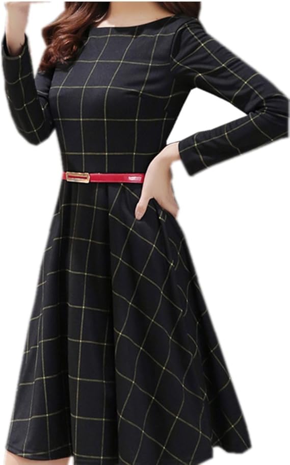 amazon ptorロングワンピース レディース 長袖 ワンピース チェック柄 フレアワンピース aライン ロング丈 フェミニン チェック ワンピース 大きいサイズ 通勤 ワンピース チュニック 通販