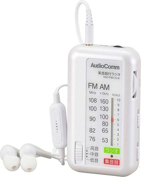 ohm audiocomm 集音器付ラジオ ホワイト rad pb01s w