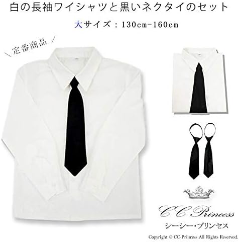 長袖ホワイトシャツ 100 130cm ブラックネクタイ付き