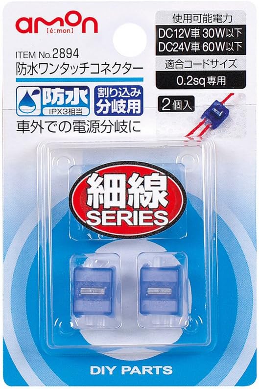 amazon エーモン 防水ワンタッチコネクター 割り込み分岐用 dc12v30w以下 dc24v60w以下 2個入 2894 車 バイク 車 バイク